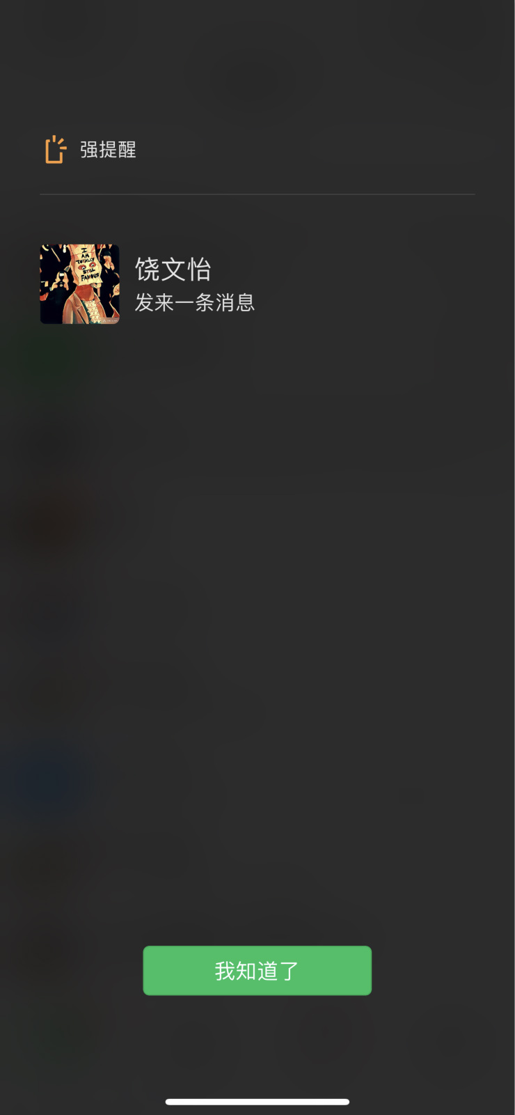 -目前我还没想到强提醒的使用场景,当我锁屏时收不到强提醒的通知,而遇到紧急事件时,目前的最佳方案就是对方给我拨通微信电话。