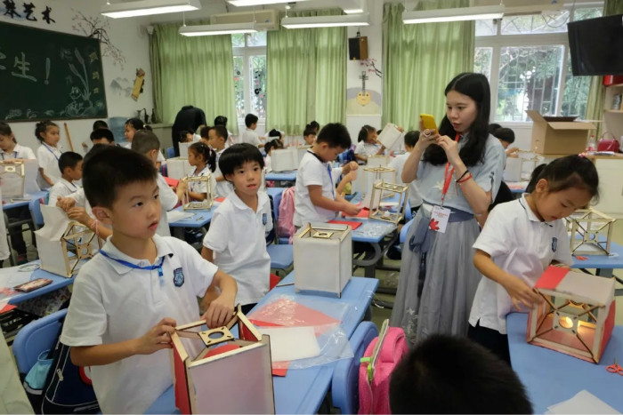其中最具特色的是,华师附小携手非遗大师、传人打造“一班一特色,一班一非遗”校园,以自然班为单位,开设31个非遗课程,包括古琴艺术、纸雕艺术、戏剧文化等。