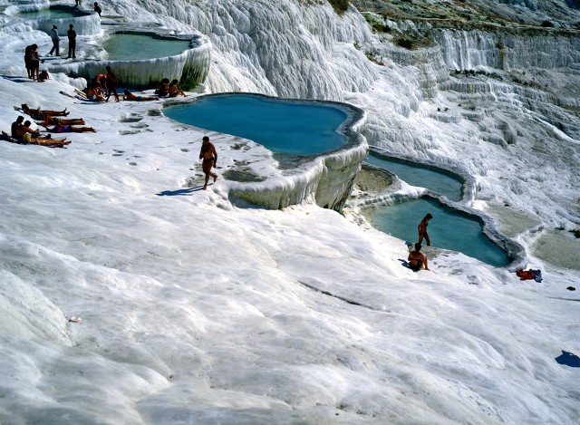 就像其名字一般,这里铺满了白白的“棉花”,又形似城堡,远看像极了大朵大朵棉花糖。但这“棉花”并非柔软,因为它实际是泉水钙化沉淀后的白色天然石灰岩阶梯。一天中,棉花堡总有不同的样子,其中最美丽的大概是日落了。当太阳的光芒一点点由金色变成殷红桃红玫瑰灰,棉花堡会像一朵最绮丽的莲花,幻化出难以置信的光影奇迹。当整个人泡在棉花堡的温泉中,富含钙质的温泉水缓缓流过脚下,聆听着淅沥的水声,远眺殷红的落日,漫天的彩霞,简直欢愉。