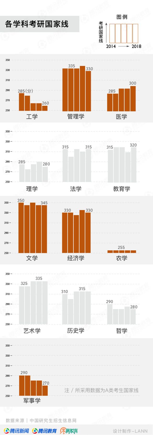 各学科考研国家线趋势分析:农学最稳定,工学下降明显