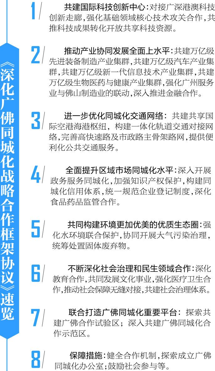 根据《协议》,两市提出探索共建广佛合作试验区,深入共建广佛同城化合作示范区。