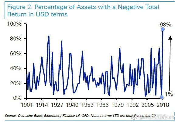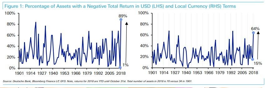 两个月前,德意志银行(德银)发布了惊人的统计发现:截至10月末,89%的资产今年累计负回报,占比为1920年以来最高。