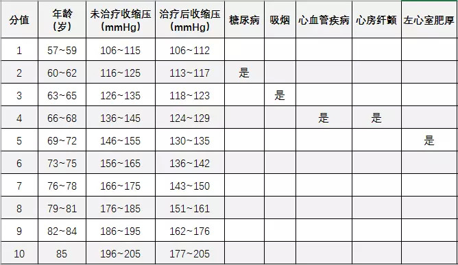 各分值对应的卒中风险值(男性)
