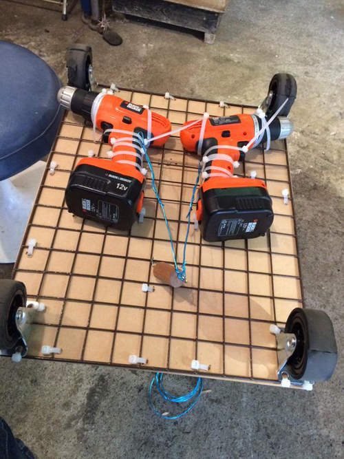 今年的“破烂机器人大战”的比赛规则很简单,只要把对方推出场地外就能获胜。因此,有的选手只把家电用品装上轮子和马达就来参赛了,比如下面这位: