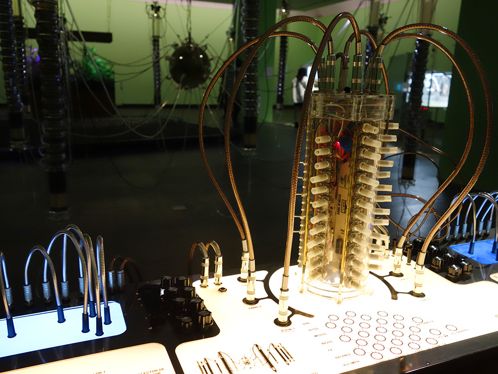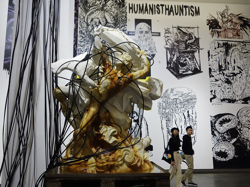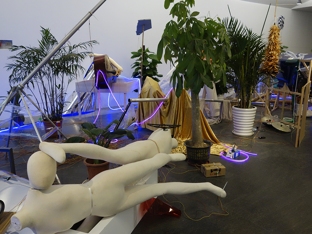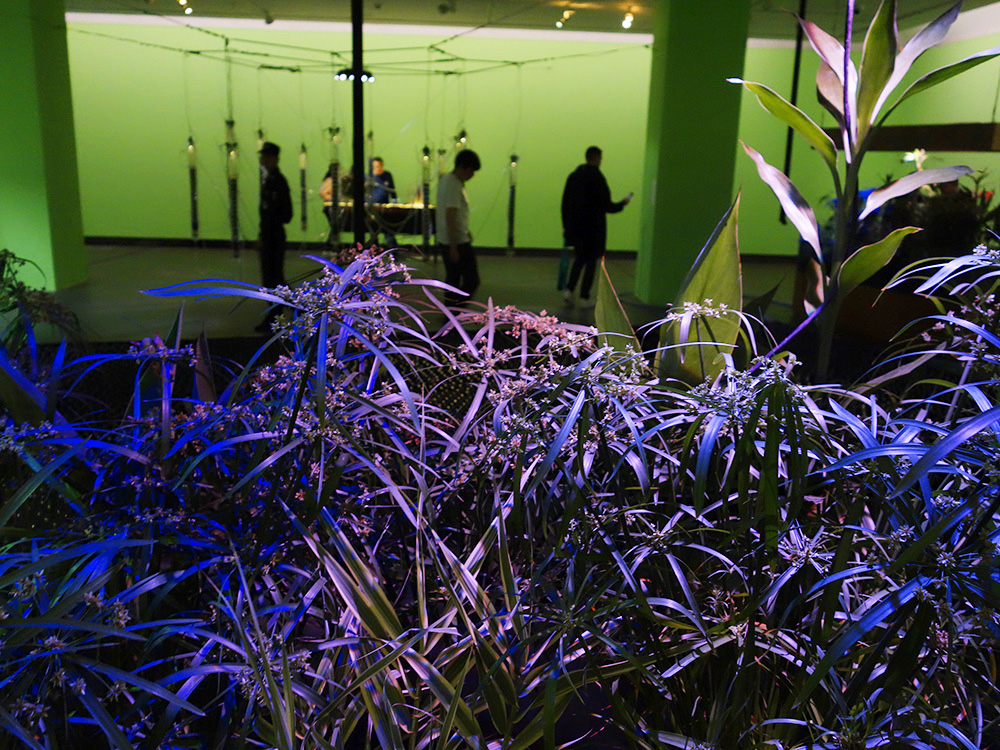 本次三年展希望在探讨由技术构建的时空,从真实到虚拟所产生的多重影响,通过人类和非人类、生物与机器、有机与无机的愿景的联盟,提供一种关于新的生态可能性的场景,使得经过重整的人文主义可以在物的集合中共生并互惠地成长。展览现场充满科技和未来感。