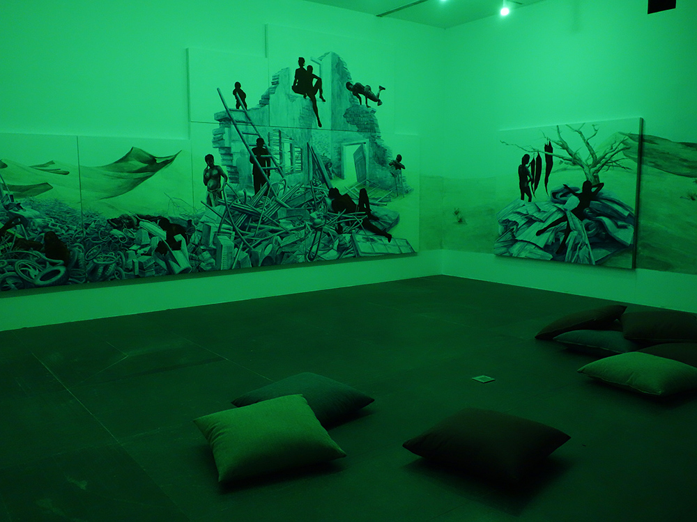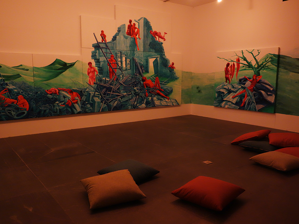 除了极具科幻感的主题展览,这届广州三年展尝试通过分展场、平行展的方式,重新整合广州周边的各个当代艺术机构,使得机构和机构之间,无论公立还是私立都能够形成交流,达成有效的协作关系,构建一种“地区美术馆群”的联盟机制。其中的亮点紫泥堂艺术小镇改造于紫坭糖厂,小镇保留了大量上个世纪50—90年代的工业风建筑,配套发展多种艺术产业版块和国内一些知名的艺术家工作室,让整个园区充斥着浓烈的当代艺术想象力。作为平行展的承办方之一,紫泥堂艺术小镇开放了两个总面积约1400平方米的主展馆,呈现多元化视觉观感和艺术的思考与表达,形成了一种艺术与空间的美妙结合。