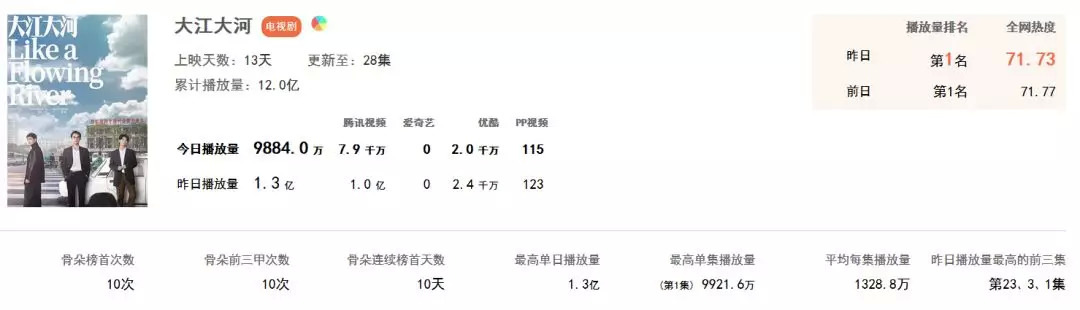 没有悬念,这批献礼剧中关注度最高的非《大江大河》莫属。