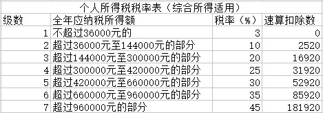 (一)综合所得,适用百分之三至百分之四十五的超额累进税率(税率表附后);