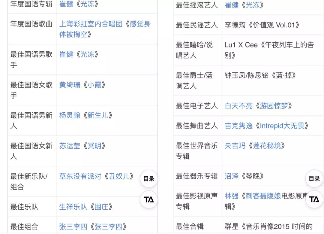 明星资本论(id:mingxingzibenlun)从流水纪口中得知,创办于2000年的“华语音乐传媒大奖”直到现在还秉承着权威性,该奖项由华语音乐传媒大奖由南方都市报主办,乐评人跟媒体人评选,精神内核和金马奖类似。但榜单只聚焦技术型歌手,没有粉丝的追捧,更无法像其他大规模颁奖典礼一样拉到赞助,导致其生存状态十分艰难。