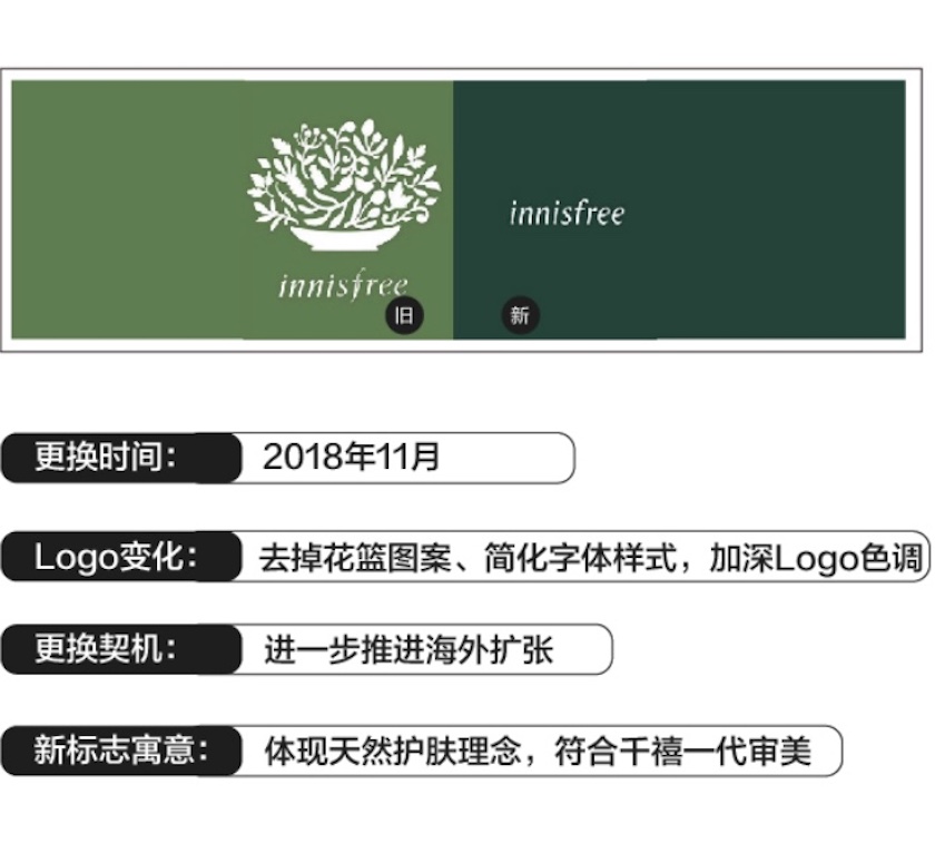 韩国护肤品牌悦诗风吟(Innisfree)就在今年11月顺势更换了自己的品牌Logo。