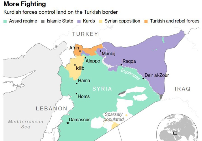 今年1月,土耳其对叙北部库尔德武装控制区阿夫林发动军事行动,并威胁继续东进,剑指曼比季。为避免北约盟友间擦枪走火,美国与土耳其于6月就曼比季达成合作路线图,承诺让叙民主力量撤出该镇。但土耳其随后指责美国违约,并于本月早些时候宣布将在“数日内”对幼发拉底河以东的库尔德武装控制区发起军事行动。