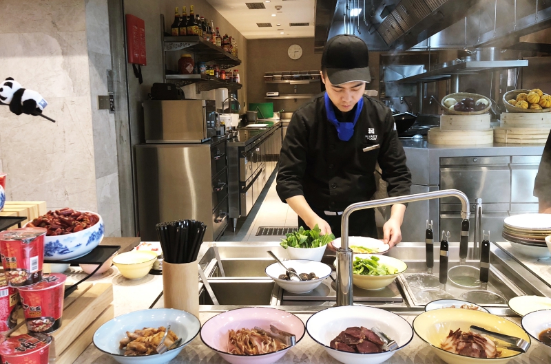 到了下午茶时间,餐厅里还提供豪华版方便面的服务,你可以自行挑选方便面的品种,然后加入鱼丸、牛肉、蔬菜等辅料,让厨师用麻辣烫的形式帮你做出一碗独一无二的方便面。