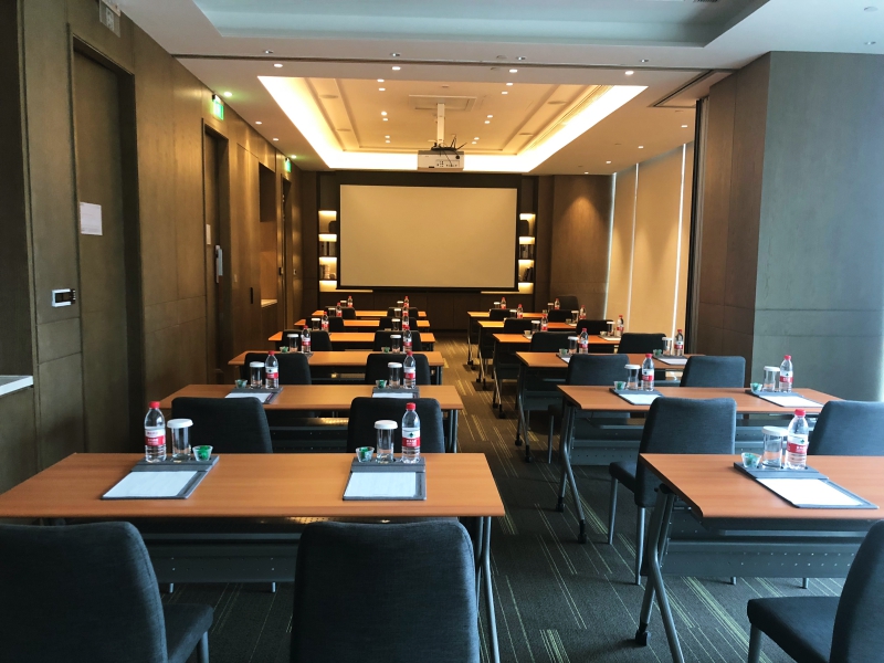 餐厅一侧有几个小型会议室,供中小型公司前来开会。要是餐厅区域太过拥挤,会议室可以跟外面的餐厅打通,扩大餐厅区域。很大程度上提高了空间的利用率。