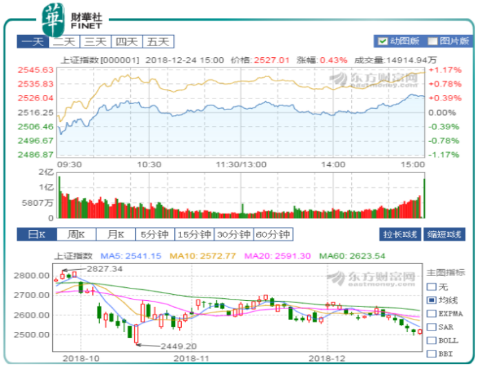 12月24日,沪深创再度同步低开,不过随即回补缺口,陆续震荡走高,随后土地流转、5G等板块走强,三大股指集体拉升翻红,沪指沿平盘线横盘震荡。午后租售同权概念股直线拉升,沪指尾盘小幅拉升,创业板指表现较强,盘中收涨超1%。