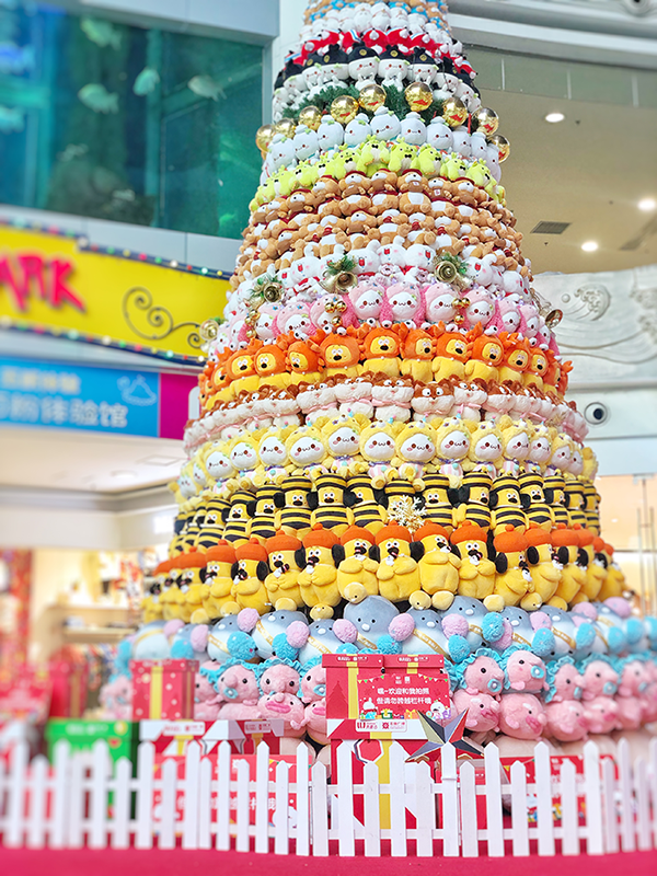 正佳广场在圣诞期间,打造了巨型毛绒娃娃树,高达6米的树身,挂满了上千只可爱的毛绒公仔,包括长草颜团子等火爆社交网络的IP形象公仔。无需滤镜美颜,随手一拍锁定朋友圈C位。喜欢抓娃娃的游客,可以在旁边的娃娃机一试身手,把萌哒哒的公仔带回家。