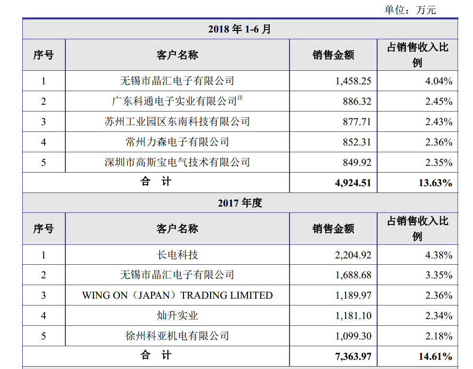 从销售来说,在2018年之前,前五大客户中一半为关联方,在2015-2018年,长电科技均为新洁能的第一大客户。在2018年上半年新增的四大客户中,均为小微企业,其中有三家公司通过公开信息可查到与新洁能有关联关系,并与新洁能的股东达晨创投有诸多联系。