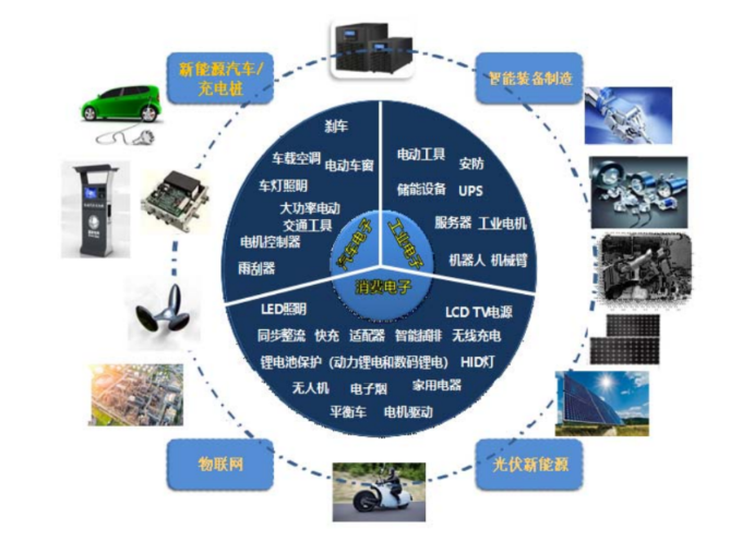 新洁能成立于2013年,主营业务为MOSFET、 IGBT等半导体功率器件的研发设计及销售,应用于消费电子、汽车电子、工业电子以及新能源汽车、智能装备制造等领域。