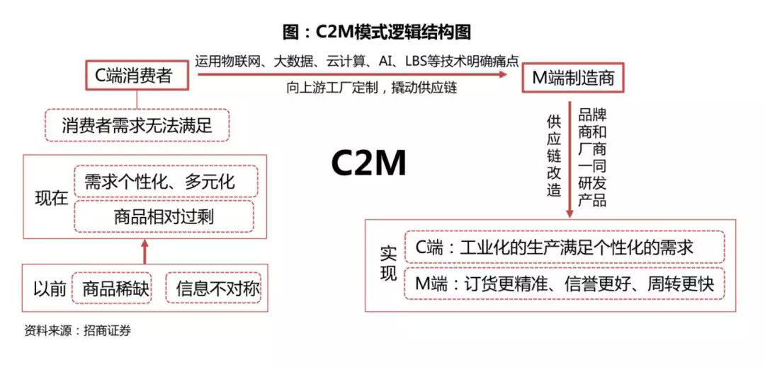 所以你可以看到淘宝在应对工厂电商这个问题时,采用了另外一种思维——C2M模式。C2M是英文Customer-to- Manufactory的缩写,简单理解就是用户在淘宝天天工厂上拼团,再由厂根据淘宝反馈的消费者数据和建议,对商品做出实质性调整的,从而降低商品价格。