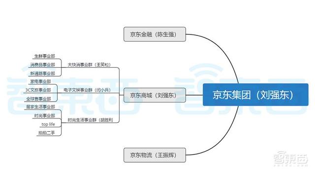整体来说,京东集团在2017年之后便确立了京东商城、京东金融、京东物流三大主营板块。此后,京东针对这三大版块,内部一共进行了三次大的调整。