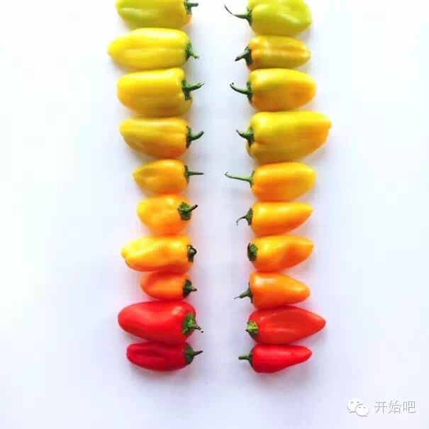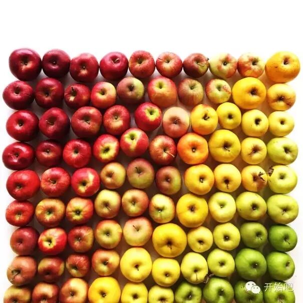 把食物摆成这种德行的家伙,灵感的来源根本不是食物摄影,而是抽象艺术,赖特厨房的主持人Brittany Wright就对食物的色彩渐变着了迷,她找遍了周围所有的农场,为了排列出完美的色彩渐变。