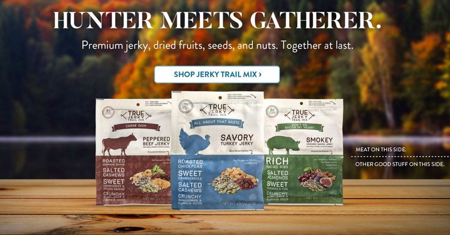 True Jerky推出多种新奇口味:蜂蜜威士忌、泰国辣椒芒果牛肉等,最近还推出肉类搭配烤毛豆、盐焗腰果、南瓜子、金黄葡萄干的混合零食装,希望“一袋就可满足高蛋白、味道、口感”。