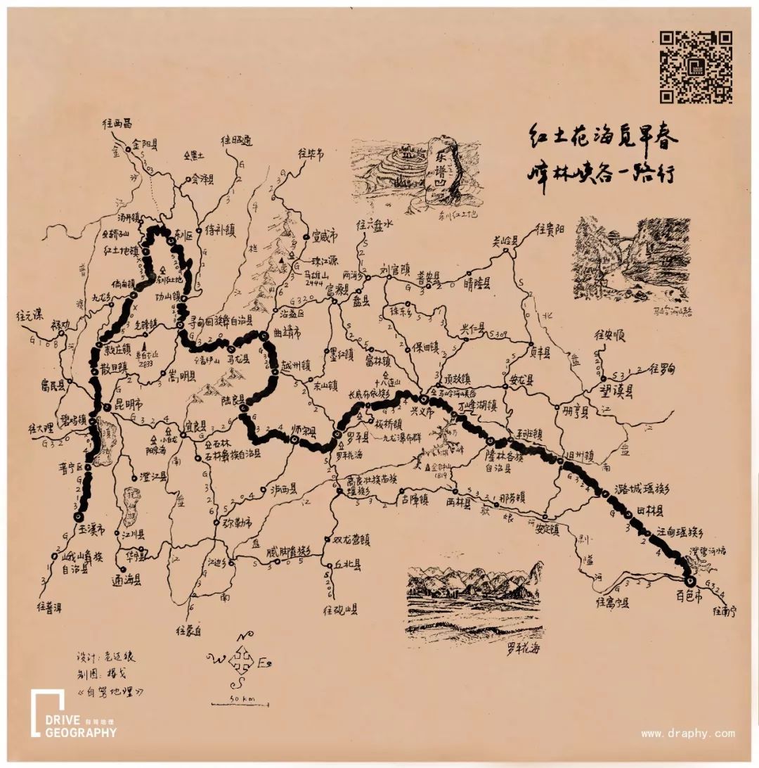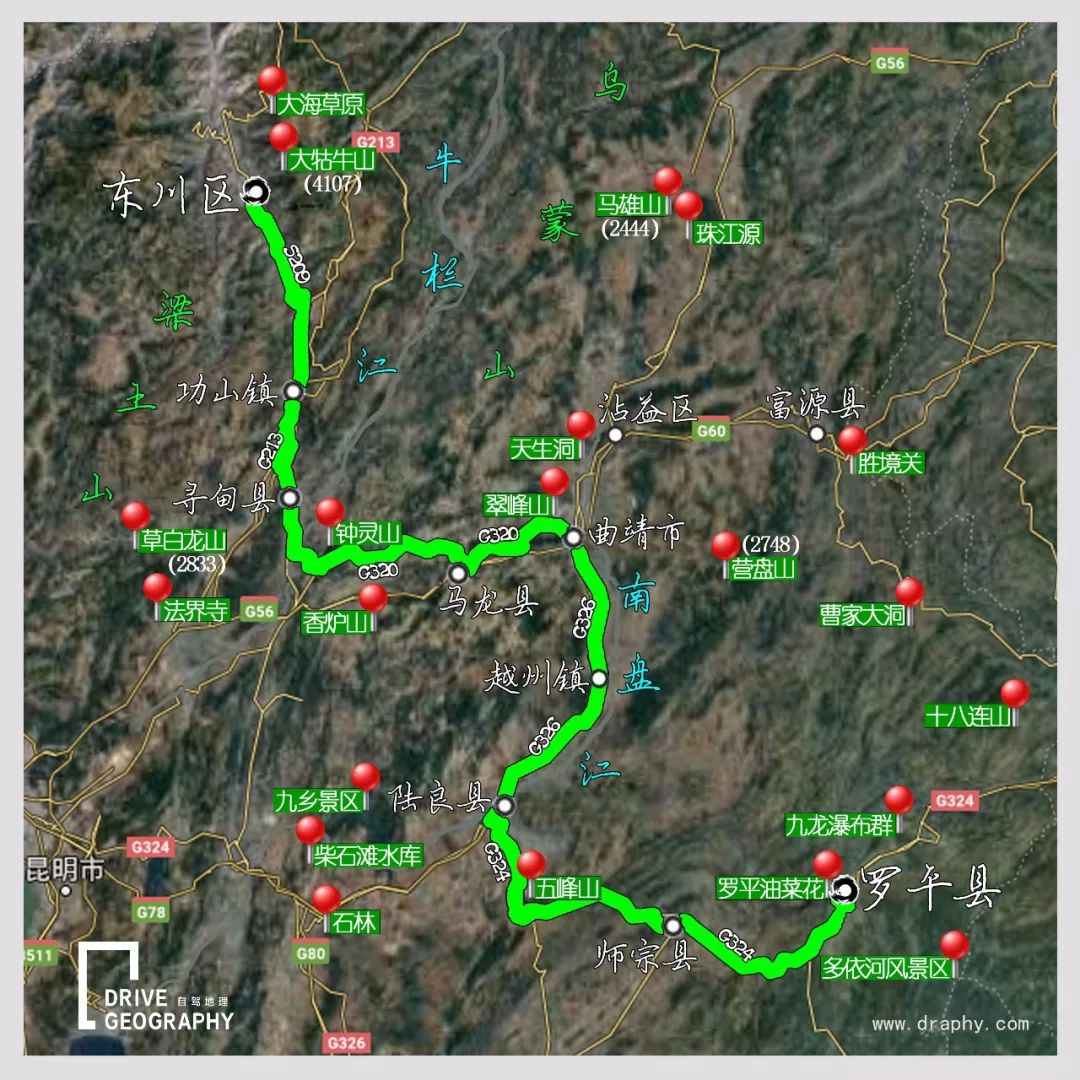 滇东北行摄路线手绘地图,制作@《自驾地理》