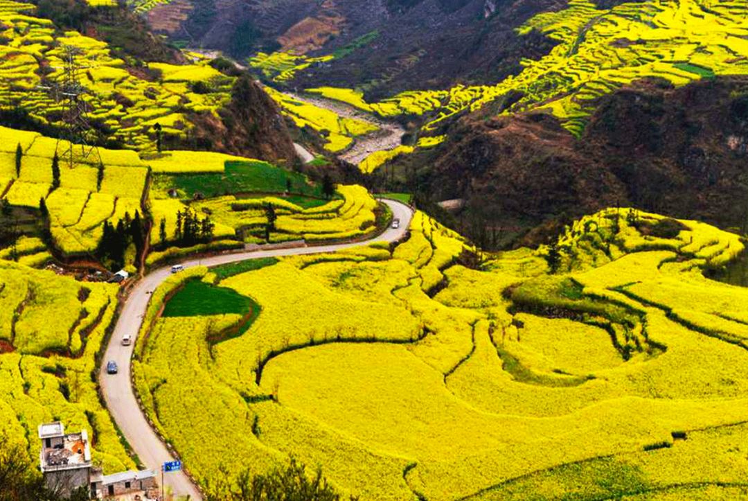 到喀斯特峰丛与80万亩油菜花勾勒出的