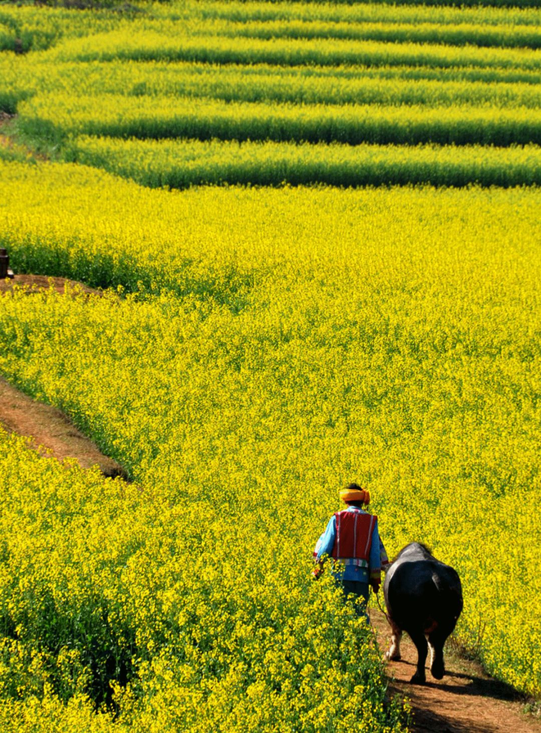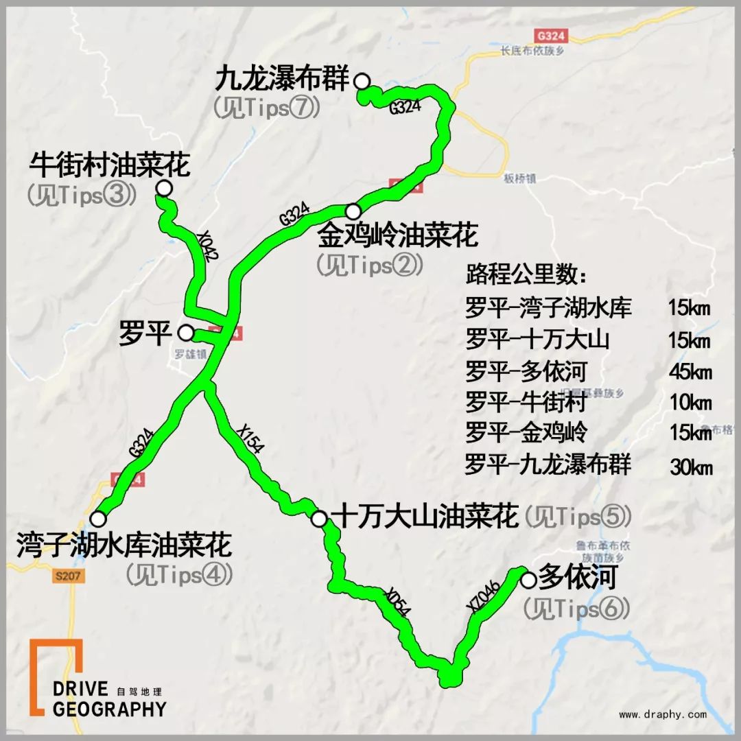 TIPS①云贵高原上的罗平油菜花,盛开时间总是早些,一般春节前-次年3月是旺季,“好色之徒”注意把握时间;②金鸡岭适合拍宽幅篇子,油菜花田里较矮的喀斯特孤峰,可以爬上去找角度;③牛街村有很多梯田,最有趣的是“螺丝田”,像海里的漩涡;④湾子湖水库的油菜花与湖水、山林交相辉映,别有意趣,前往水库的路上还会经过油菜花节主会场,可以凑个热闹;⑤十万大山峰峦分明,适合拍远景;⑥多依河和马岭河峡谷山水相连(步行往返约3h),有名的鲁布革小三峡是它其中一段,“龙太子”房祖名主演的电影《千机变2》曾在此取过景,当地布依族做的五色花饭可以试一下,里面还有竹筏可坐;⑦九龙潭瀑布顺着景区路就能轻易找到每个瀑布(步行往返约3h),有一个位置很高的观景台,可俯瞰所有瀑布,怕累的话可花钱乘坐电轨缆车,只要5分钟就上去了。