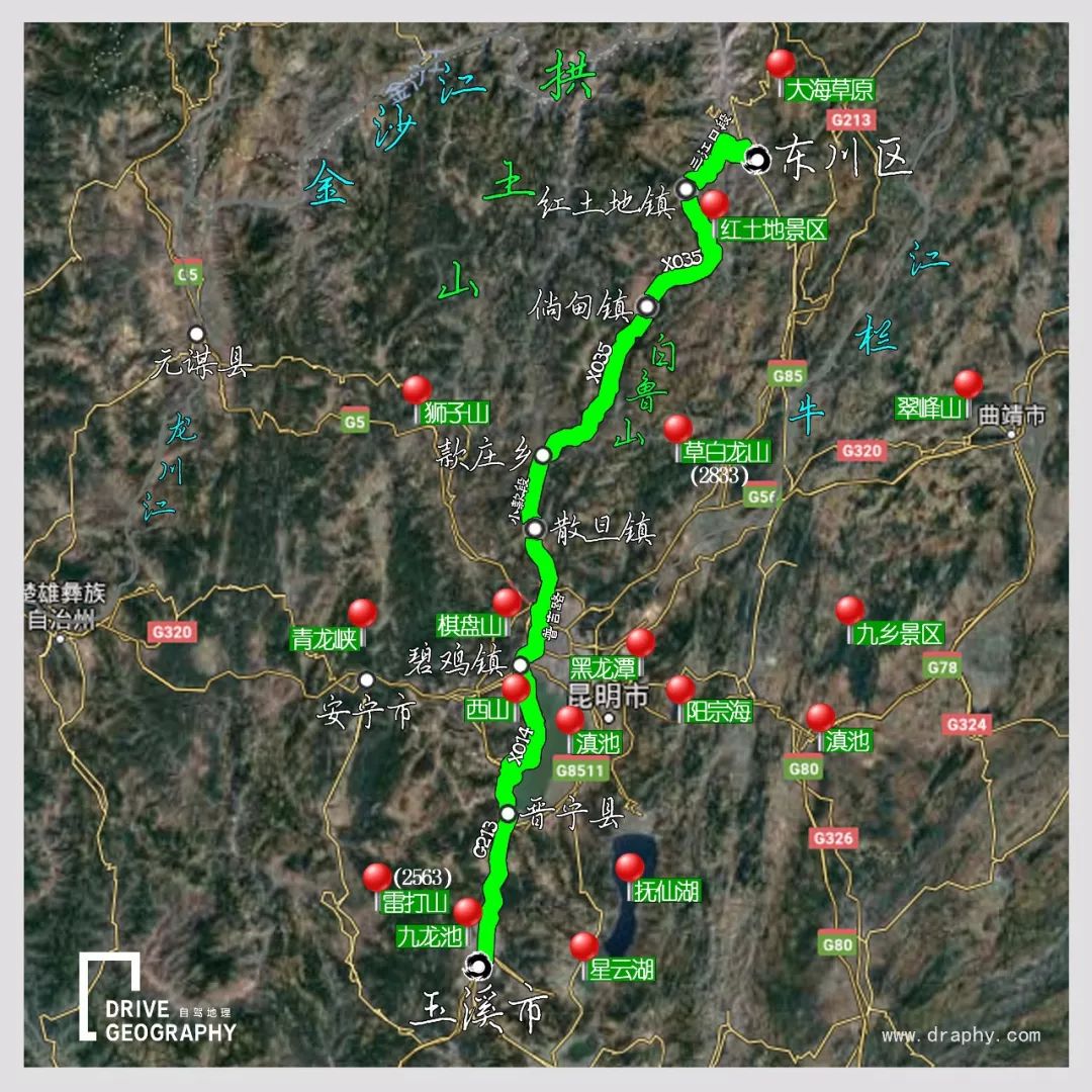 玉溪市 40km 晋宁县 45km 碧鸡镇 45km 散旦镇 55km 款庄乡 55km 倘甸镇 60km 红土地镇 50km 东川区