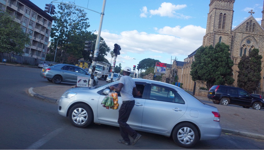 除了颠簸的道路,哈拉雷街头最具特色的景象就是在路边、红绿灯路口卖小商品的小贩。由于失业率高企,街头贩卖成了当地人自救的方式之一。