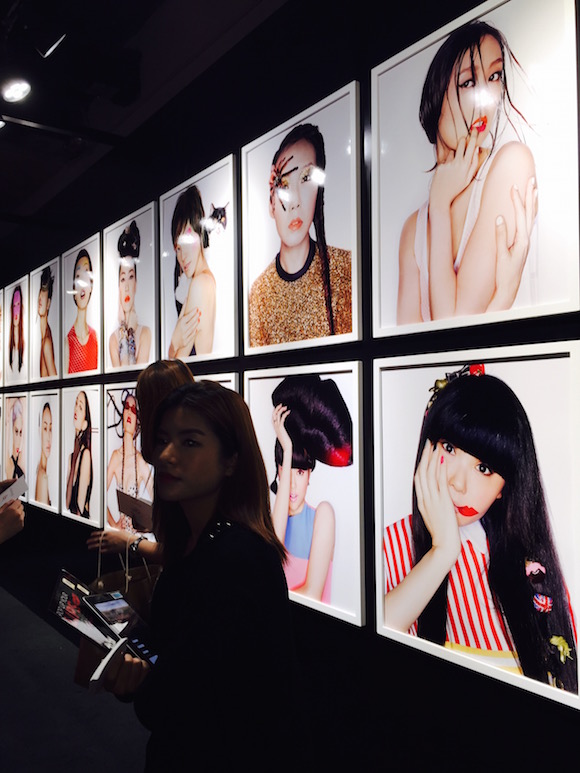 店内一面墙上展示着莫文蔚、何韵诗、周秀娜和罗兰等明星的红唇大片。由曾和Lady GaGa、滨崎步合作的摄影师Leslie Kee操刀。