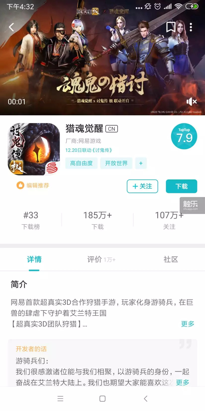 TapTap平台的《猎魂觉醒》页面
