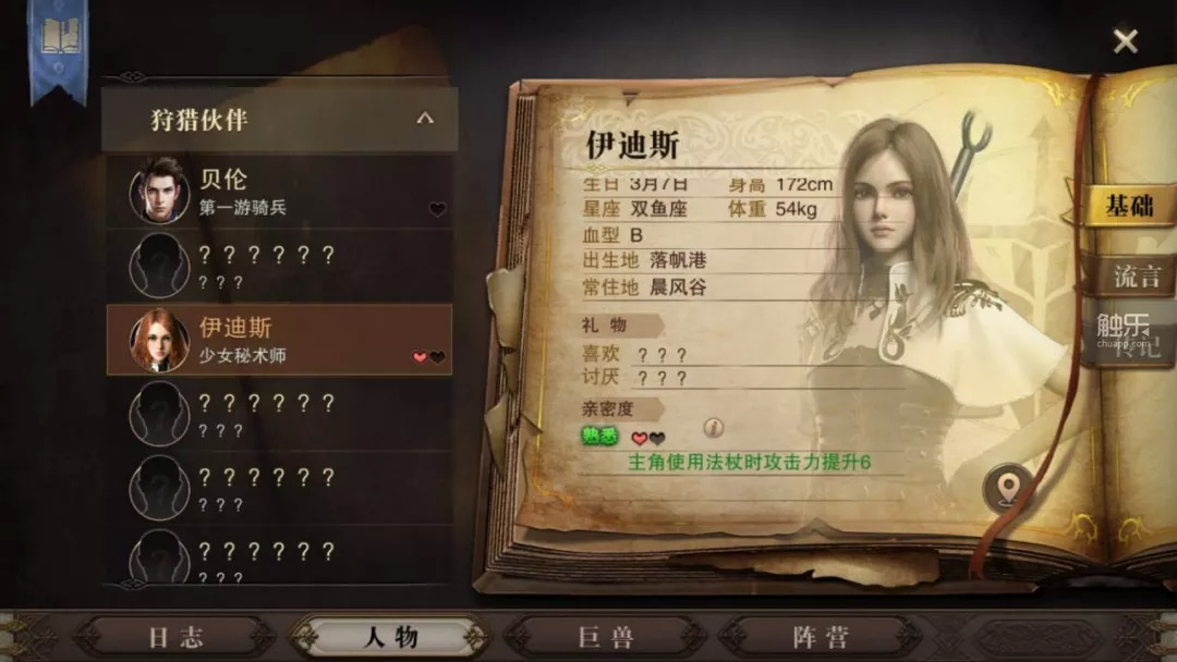 在游戏中,每个重要NPC都有自己的性格喜好与阵营归属。玩家可以找他们聊天,向他们赠送礼物提升好感度,通过任务提升阵营友好度等等。通过提升好感可以解锁特定角色的背景故事,接到特殊任务,直至让这些角色成为自己的伙伴。