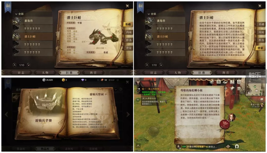 游戏文本量很大,任务书信都可以打开阅读内容,怪物图鉴也有详细介绍