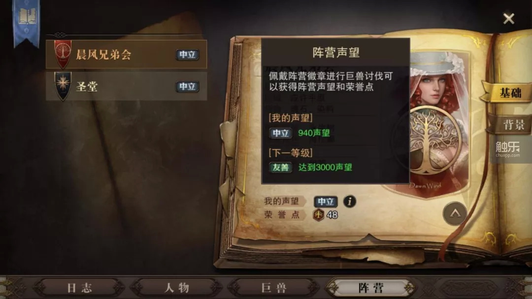 游戏设置了阵营声望等系统,虽然是内容深度的天坑,但也不违和