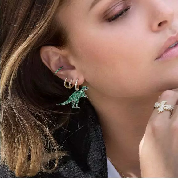 于是,Kika开始探索时尚珠宝品类的设计,她热衷于创作玩味十足、价格适中的配饰,擅长用纯银为主打的平价材料(搭配黄金、宝石、水晶、锆石、钻石)打造设计感极强的时尚珠宝,让来自不同种族、文化和多元背景的穿戴者搭配出属于自己的个人风格。这一品类不仅设计新颖时尚,定价在人民币几百元到几千元不等,也可以让很多入门级的珠宝消费者轻松接受。