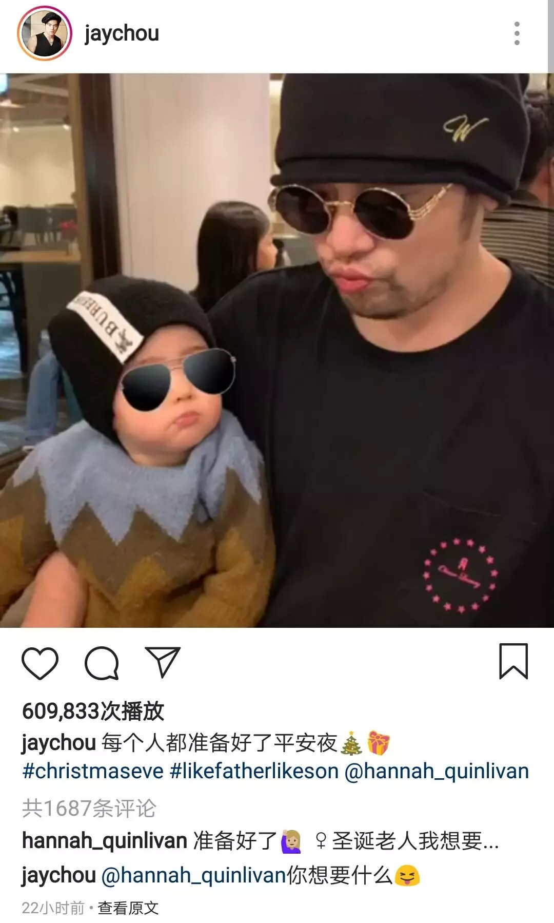 昨天是平安夜,周杰伦在社交软件上晒出与儿子的合照,並配文:“每个人都准备好了平安夜。”照片中,周杰伦模仿1岁儿子嘟嘴的样子,而儿子的眼睛虽然被周杰伦用墨镜特效遮挡,但也因此看起来跟爸爸更像。周杰伦很少晒儿子的合照,因此网友感慨:“杰伦终于记得自己还有个儿子。”