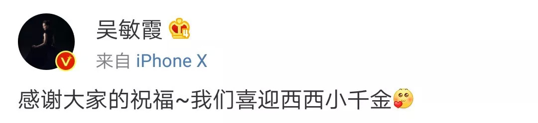 今天,吴敏霞晒出首张全家福与宝宝可爱的脚印配文称:“感谢大家的祝福,我们喜迎西西小千金”。照片中,吴敏霞与老公张效诚抱着襁褓中的女儿,眼神中洋溢幸福的喜悦,十分温馨。吴敏霞与张效诚于 2017 年大婚,今年12月18日平安诞下女儿小西西!