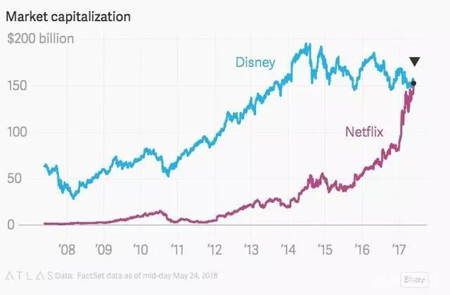 迪士尼与Netflix的市值变化