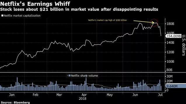 订阅用户数量的增长,直接与Netflix的股价及市值挂钩,Q2这一财报出炉时,一度让它的股价大幅下跌13%。
