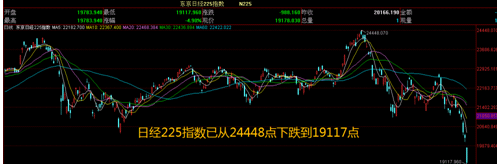 截至北京时间12月25日15:00,日经失守2万点大关后跌幅迅速扩大,并最终收跌5%,报19155点,自10月2日高点回落逾20%,正式进入熊市。日本东证指数收跌4.9%,报1415.55点,上周东证指数就已进入熊市。
