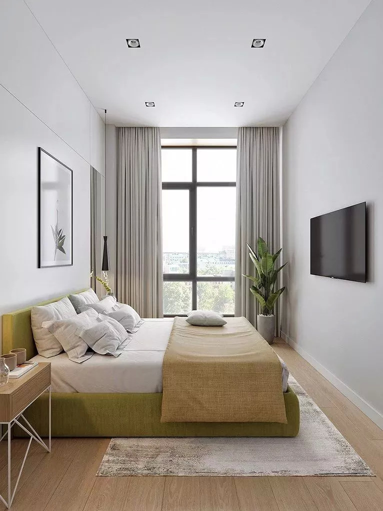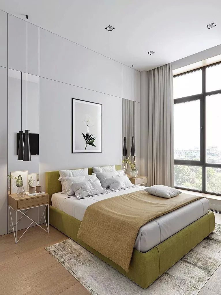 卧室走简约风,没有过多的家具摆设,整洁又干净,看起来都很舒适。大面积的窗户,光线较好,增加了室内的通透性。