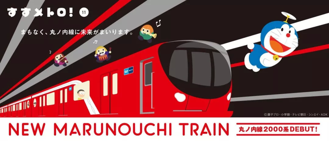 以覆盖领域特别广泛的“哆啦A梦”为例。在“东京地铁”这种在男女老少都在使用的公共交通情景中,哆啦A梦作为知名度覆盖全年龄层、给人“安全感”和“未来感”的角色,被广泛采用到说明性广告、地铁海报、标志、网站主页等地方。