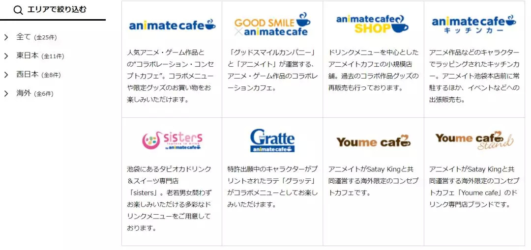 2012年“animate café”开张,现在已经发展到包括海外业务在内8项业务板块、25家门店。