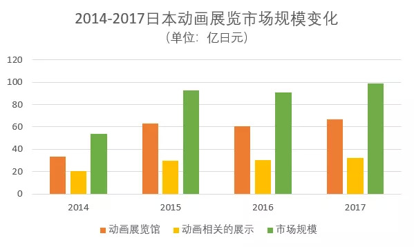 2017年动画展览市场规模继续攀升,达到98亿6787万日元,直逼百亿日元大关,同比增长8.3%。