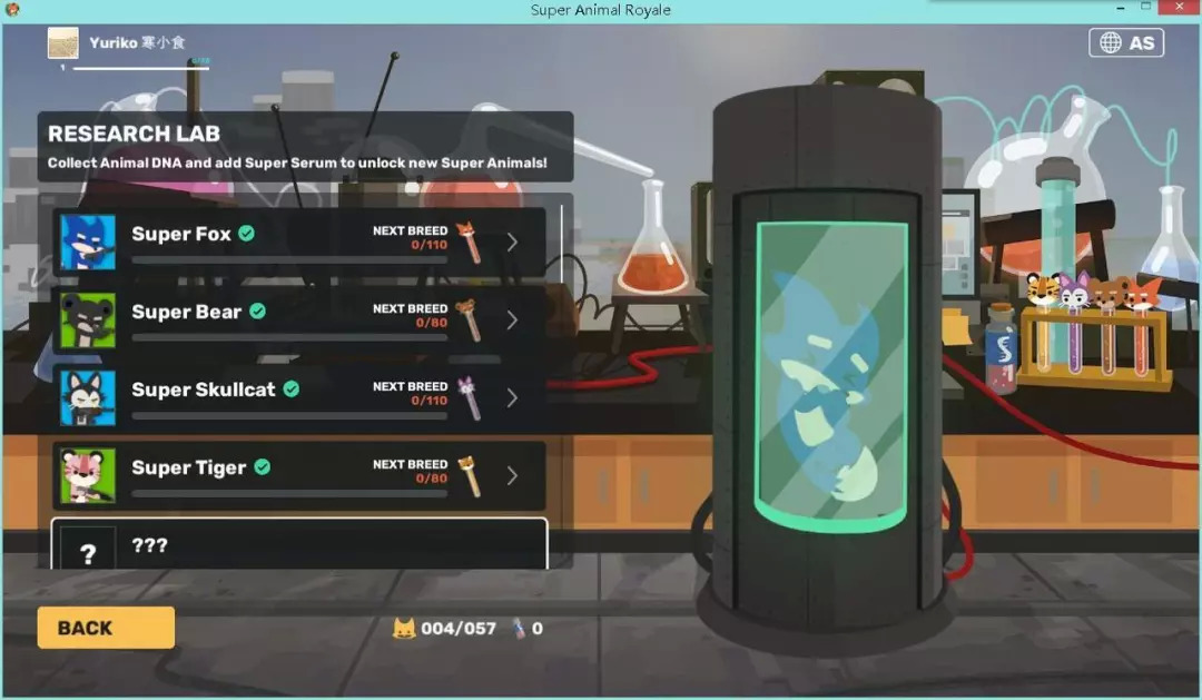 不同于《绝地求生》开箱的游戏机制,《动物大逃杀》选择了通过每局战斗伤害玩家获得类似于DNA的道具来解锁新皮肤,并通过随机掉落解锁新的部件装饰(这一点是小满猜的,还没摸索出来)。这一举措似乎可以很好地增加游戏时长,但从心理学的角度来说,也降低了玩家可获取的快感——毕竟带着“赌”的要素总给人来的更多新鲜感。