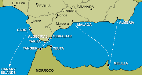 移民偷渡的路线一般分两步,首先从丹吉尔沿陆路前往与摩洛哥接壤的西班牙飞地休达(Ceuta)或梅利利亚(Melilla)(注:摩洛哥认为上述两地属于争议领土,自其从法国和西班牙的殖民统治下独立后,摩洛哥多次宣示对这两块土地的主权),再沿海路抵达西班牙的欧洲陆上领土。但这条距离仅仅几十公里的偷渡之路相当危险,特别是在摩洛哥海警近期加强了边境管控后。即便如此,大多数来到摩洛哥的移民也不会选择长居此地,丹吉尔只是他们前往欧洲的一块跳板。