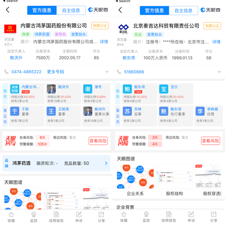 界面新闻还发现,该公司办公区内还存放有“鸿茅药酒”相关文件。工商信息显示,鸿茅药酒公司与秦吉达公司的法定代表人均为鲍东奇。