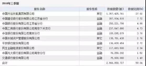 从前十大股东构成来看,银行占了绝大多数,包括了中国外运长航集团有限公司、中国建行江苏分行、中国银行江苏分行、中国工行南京下关支行、中信银行南京分行、长城资管、平安银行、民生金融租赁、光大银行南京分行、交通银行等。