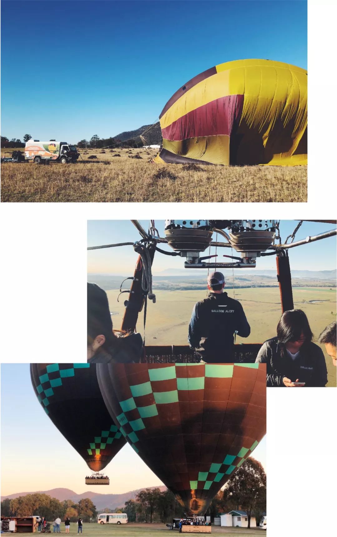 乘热气球的时刻很重要,猎人谷的热气球都在日出之时起飞,也就是清晨6、7点时,伴着一缕缕橙红色的阳光,逐渐上升到1200米的高空,飞越大片的葡萄园,而五彩斑斓的热气球,在升入高空的过程中,也成为了其他人眼中美景的一部分,这些都着实给猎人谷镀上一层浪漫色彩。